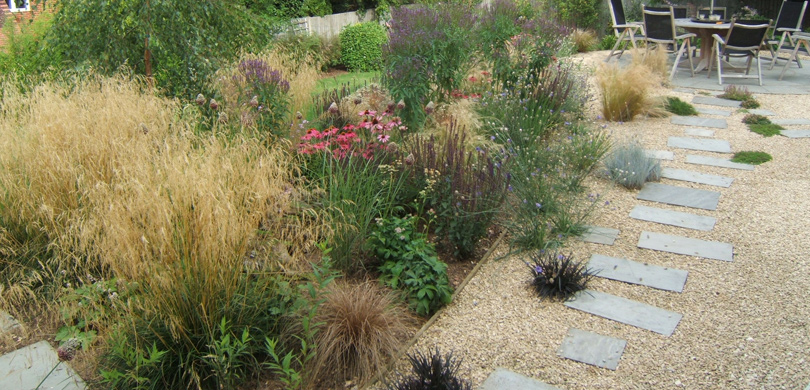 The back garden already had some hard landscaping but no planting to speak of and the front garden other than the driveway needed a total overhaul. The house was very contemporary, but the client wanted the planting to be naturalistic to soften the geometric lines of the house.