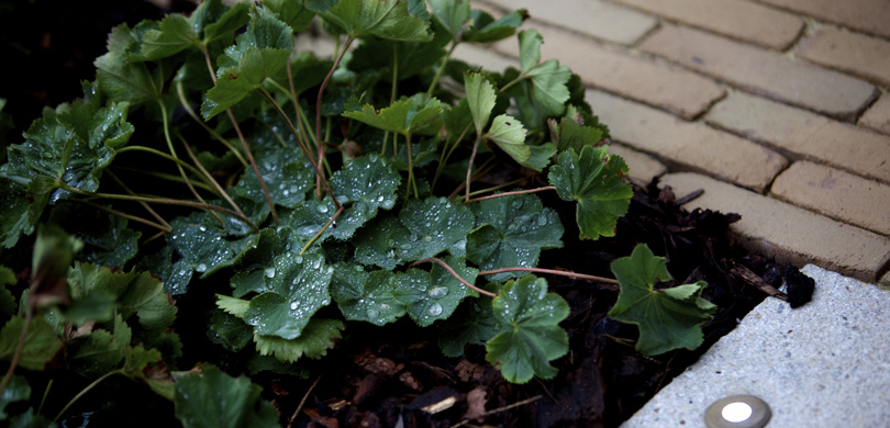 Belgian block pavers were used to add interest to a new path giving access to the back gate and the front door and then the pavers were replicated in a small path leading to a Foras stone water feature. Lighting inset in the path and lighting on the water feature were added, along with low maintenance planting to give all year round interest. We subsequently designed the client’s back garden too.